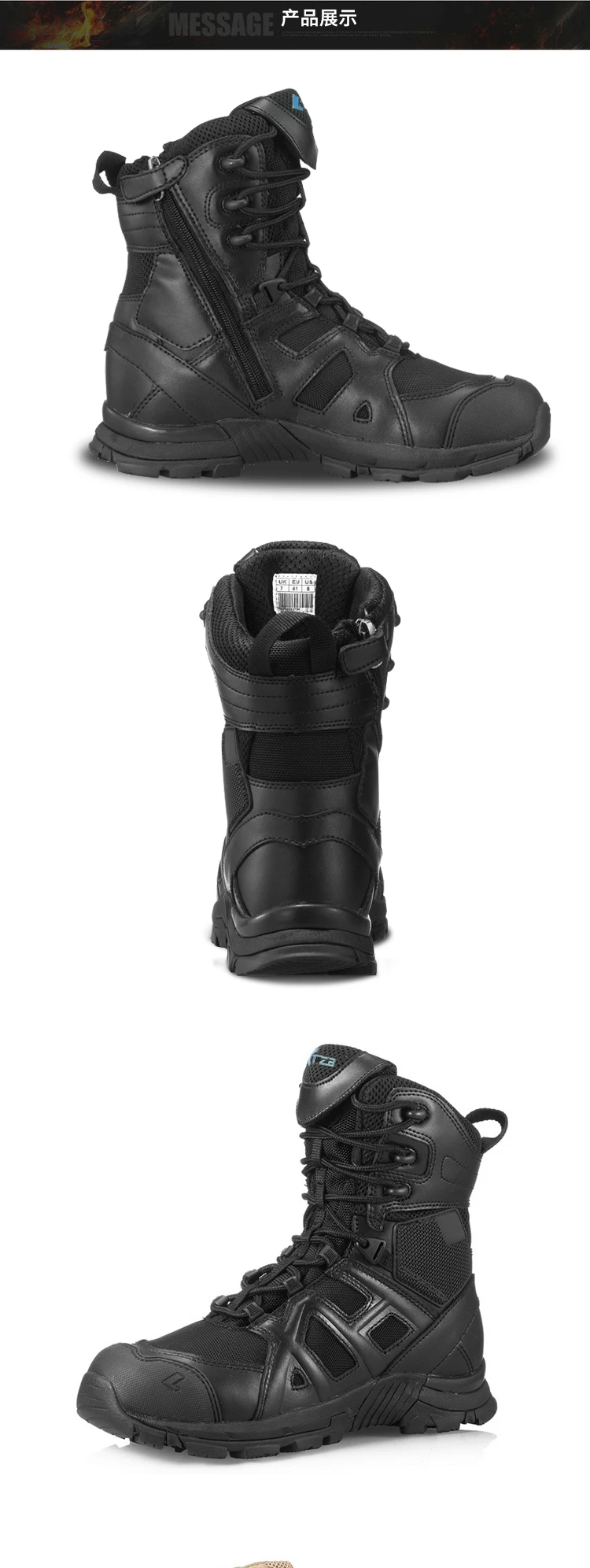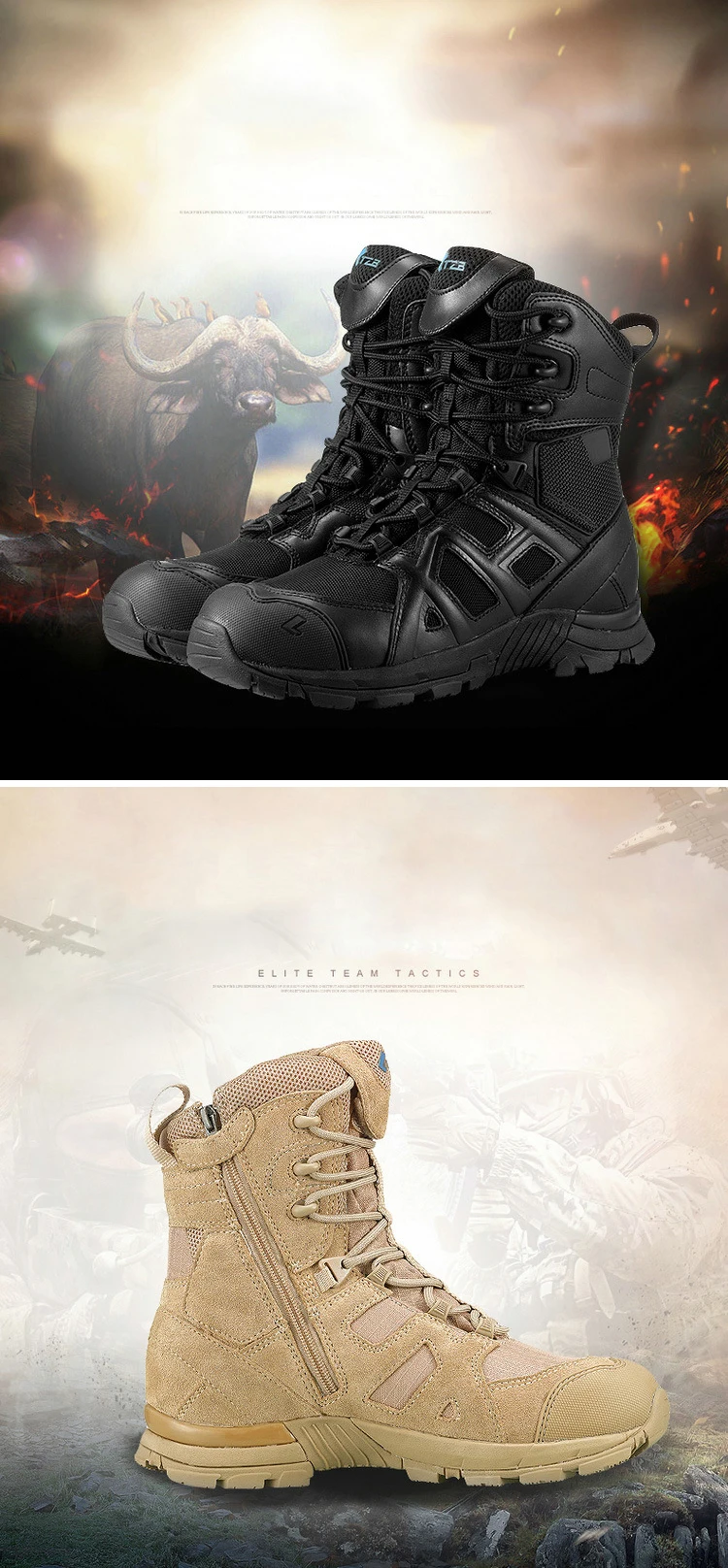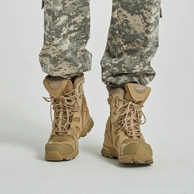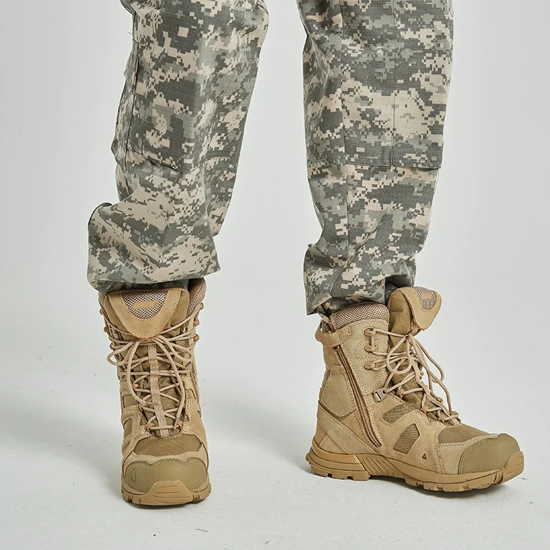 Outdoor Desert Combat Boots Land Shock Absorption Tactical Boots Men's High Autumn and Winter PU ZIP Midi Rubber Climbing CN;HUB