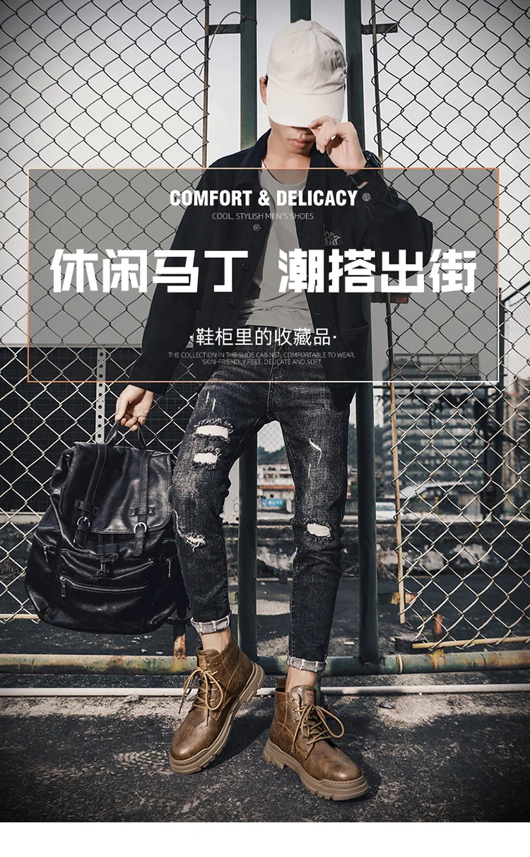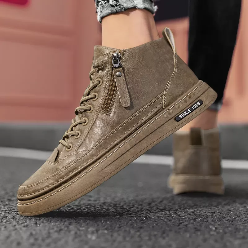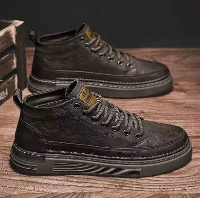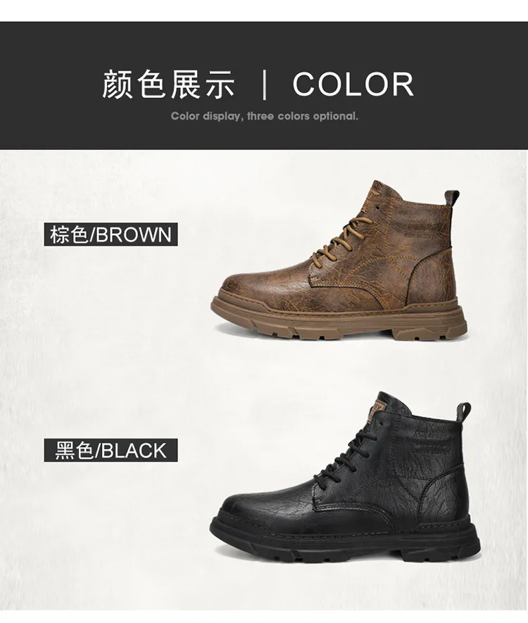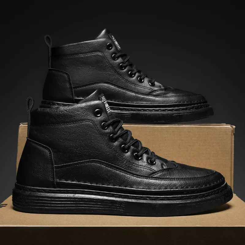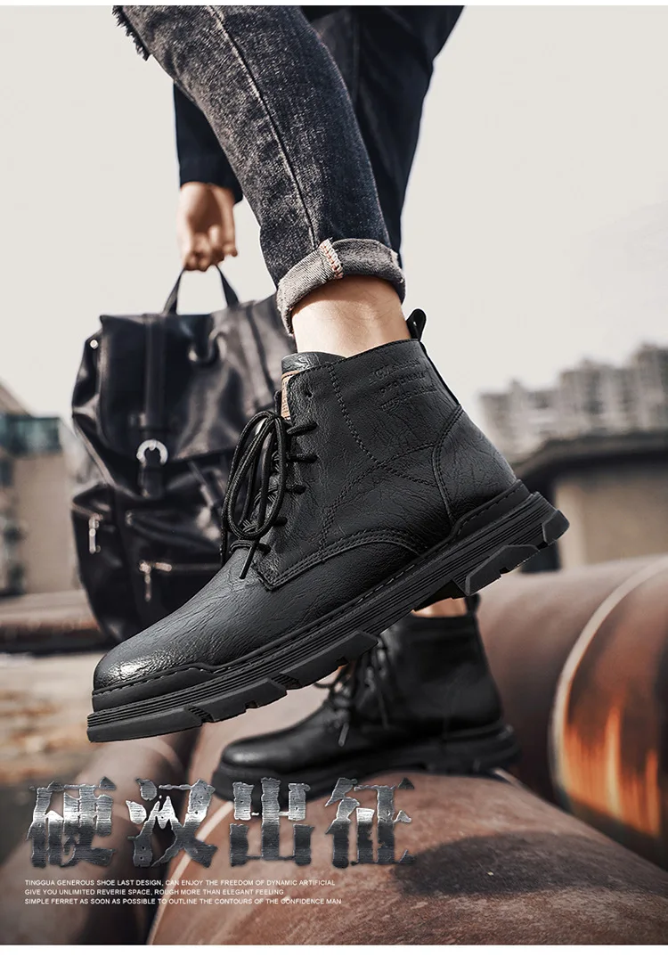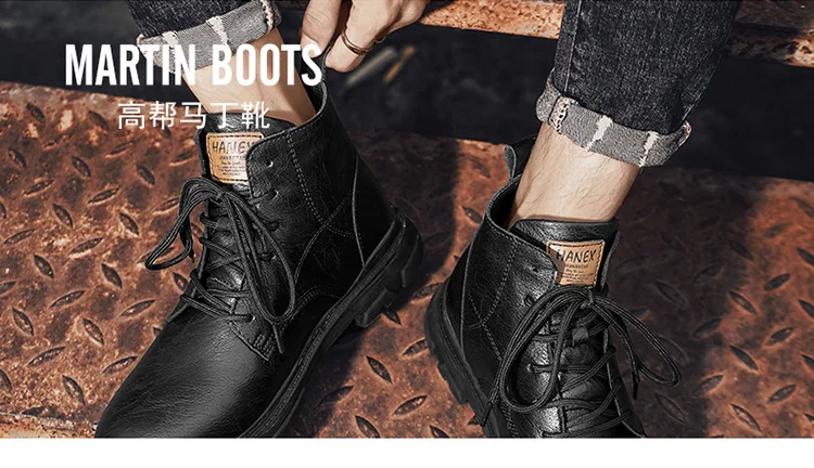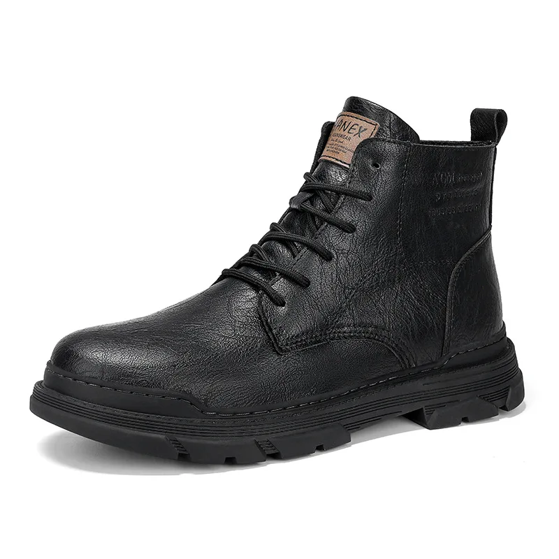Retro High-Top Combat Boots Black Lace-Up Leather Shoes Flat Style Outdoor Casual Boots Large Size Cross-Border Fashion
